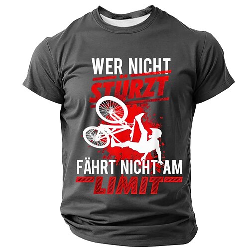 Herren Radsport Lustiger Slang Deutsch T Shirt Kurzarm T-Shirt 3D-Druck Rundhalsausschnitt Hemd Mode Täglich Straße Täglich Schwarz Blau Grün Sommer Frühling Bekleidung S M L XL XXL XXXL