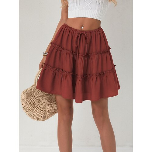 Per donna Gonna da vacanza Moda Casual Mini Vita Alta Gonne Semplice Coulisse Volant Elasticizzato Quotidiano Streetwear Nero Bianco Arancione Marrone Estate Poliestere