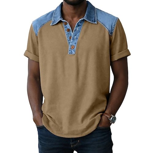 Per uomo Polo Camicia di Jeans Casuale Lavoro Bavero Manica Corta Essenziale Moderno Blocco di colori Patchwork Bottoni Primavera Estate Blu Nero Bianco Blu marino Marrone Verde Polo