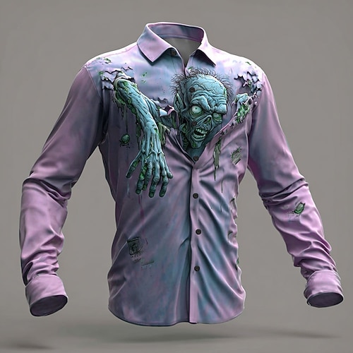 Herren Zombies Horror Kostüme Hemd Knopfhemd Langarm Dunkel Punk Gothic Stil Outdoor Feiertag Sommer Frühling Umgeschlagen 3D Druck Kragenhemden Pink Blau Lila Grün