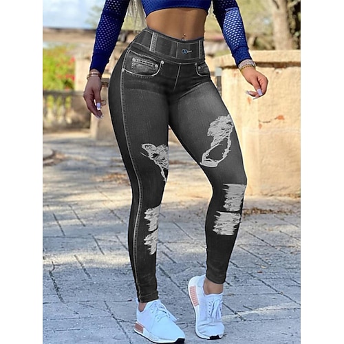 Per donna Jeans Leggings Jeggings Streetwear Casual Lunghezza intera Vita media Semplice Tasca Strappato Comodo Micro-elastico Quotidiano All'aperto Vacanza Blu Nero Color cenere Primavera Autunno