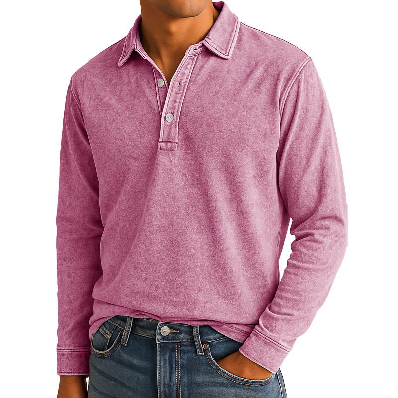 Men's Cotton Polo Shirt Golf Polos Shirts Business Casual Lapel Classic Long Sleeve Vintage Fashion Solid Color Plain Vintage Style Washed Fall Winter All Seasons Regular Fit Dark Brown Black Pink