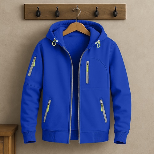 Per uomo Felpa con cappuccio Felpa con cappuccio a zip intera Felpa con cappuccio in pile Felpa con cappuccio foderata in pile Rosso bordeaux Nero Bianco Blu marino Blu Reale Con Cappuccio Semplice