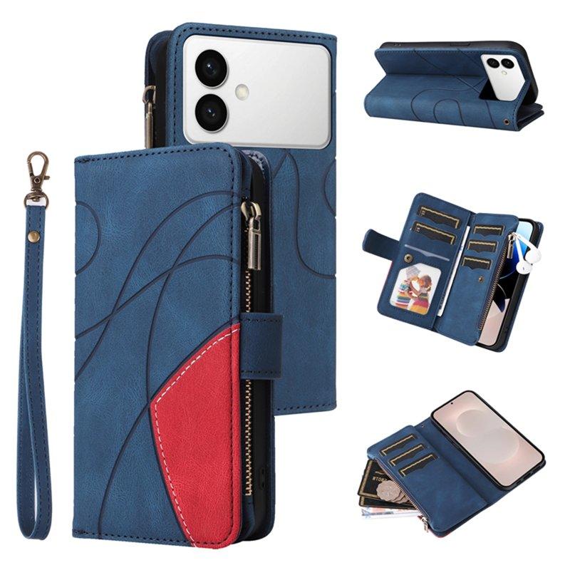 Mobilskal till Samsung Galaxy S26 Edge KonstLäder Med Rem Dragkedja - Blå