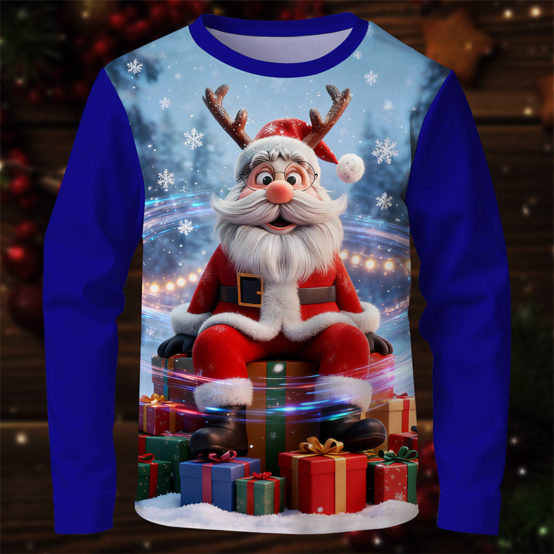 Christmas Boys' 3D Santa Claus T shirt Tee Long Sleeve Spring Fall Fashion Basic Kids 4-12 Years Crew Neck Outdoor Casual Daily Regular Fit