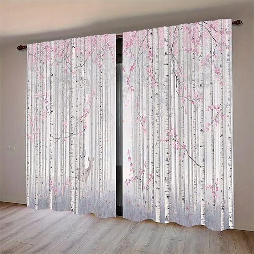 2 tende con stampa floreale e vegetale, tende in poliestere con passante per asta, tende con stampa botanica verde per soggiorno, camera da letto, cucina, dormitorio, decorazione per la casa.