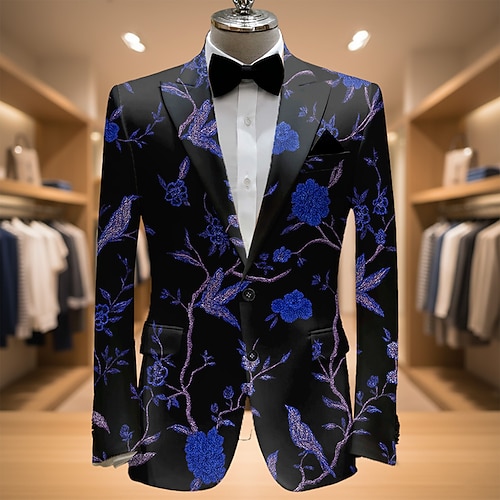 Per uomo Floreale Giacca blazer Cappotto Di tendenza Confortevole Traspirante Artistico Casual Quotidiano Abbigliamento da sera Tasca Stampa 3D Bottoni Tutte le stagioni Dentellato Manica Lunga Blu