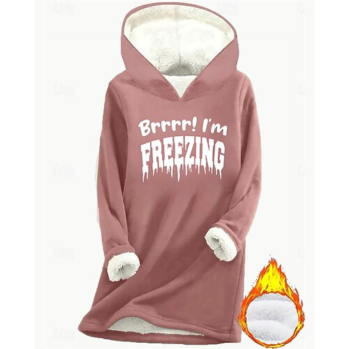 Per donna Felpa con cappuccio Grafico Lettera Caldo Casual Pile Sherpa Manica Lunga Con Cappuccio Top lunghi Streetwear Abbigliamento Quotidiano Casuale Stampato Rosa scuro Blu Grigio Autunno Inverno
