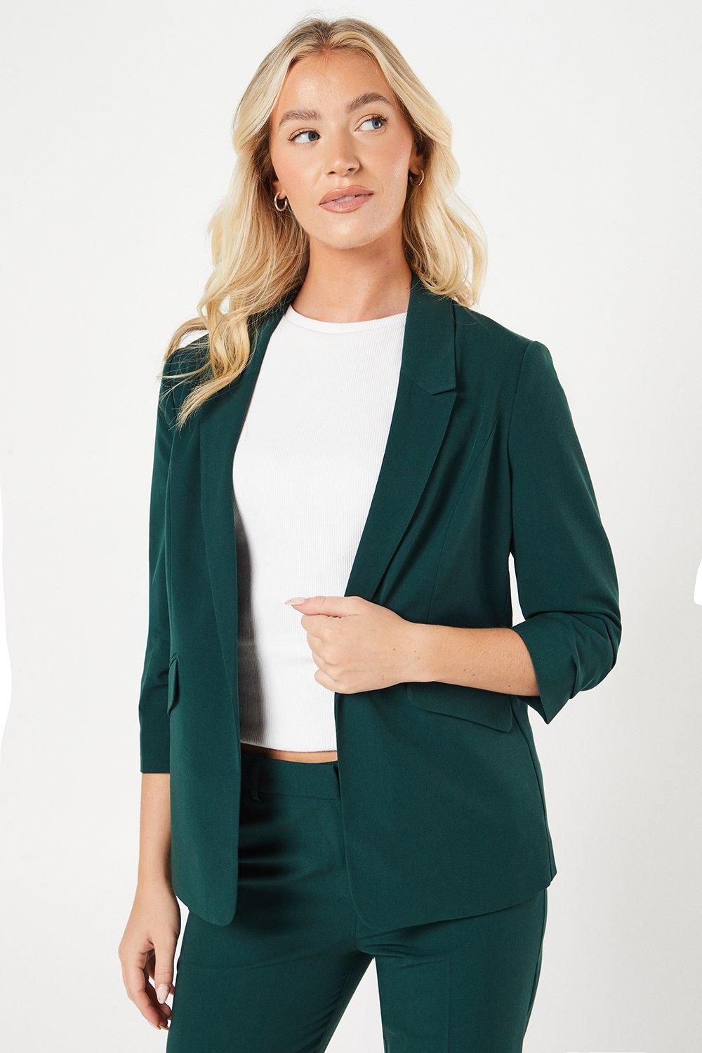 Dorothy Perkins Womens Ruched Sleeve Blazer - Forest Green - Size 14 UK | Dorothy Perkins Sale | Discount Designer Brands