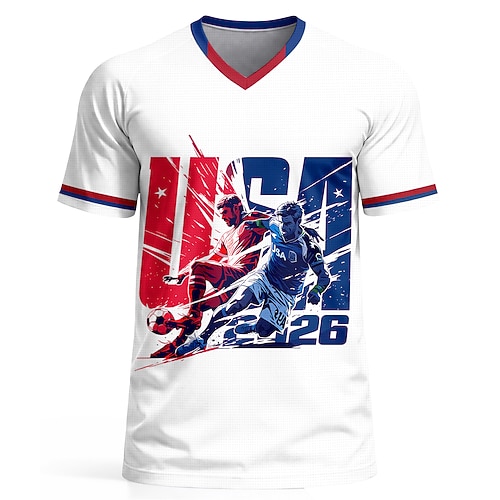 Unisex Geometrisch Farbverlauf Buchstaben Zahlen Fußball-Sommer Global Match Laufoberteil Laufshirt Sommer Kurzarm UPF 50 Schnelltrocknend Atmungsaktiv Fitnessstudio Laufen Track Fitness Rot blau