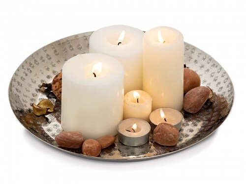 Amagohome Dekotablett ø 28 cm rund Deko Tablett Serviertablett Metall Kerzentablett : silber