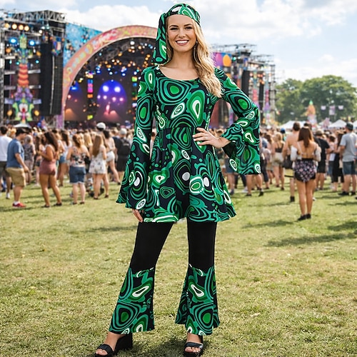 Set Retrò Vintage Anni '70 Blusa / Camicia Pantaloni Copricapo Lunghe Hippie Disco Geometrico Costume Per donna Halloween Carnevale Festival Musicale Festa a tema retrò Adulti Blusa Pantaloni