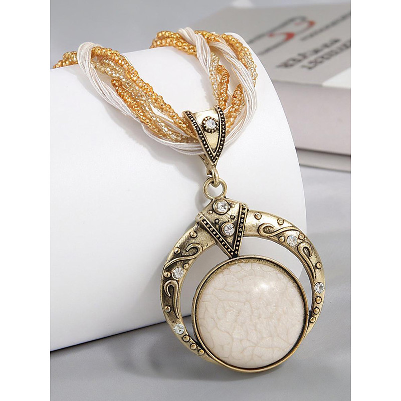 Women's Bohemian Alloy Necklace with Multi-Colored Beaded Rope, Unique Pendant Design, Perfect for Casual and Festival Wear