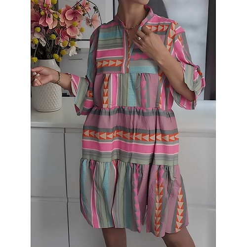 Per donna Mini Abito Vestito Estivo Abito a Tubino Abito aderente e svasato Vacanza Casual Boho Quotidiano Ufficio Spiaggia Vestibilità regolare Grafico Geometrico Manica Lunga Collo Alto Rosa Estate