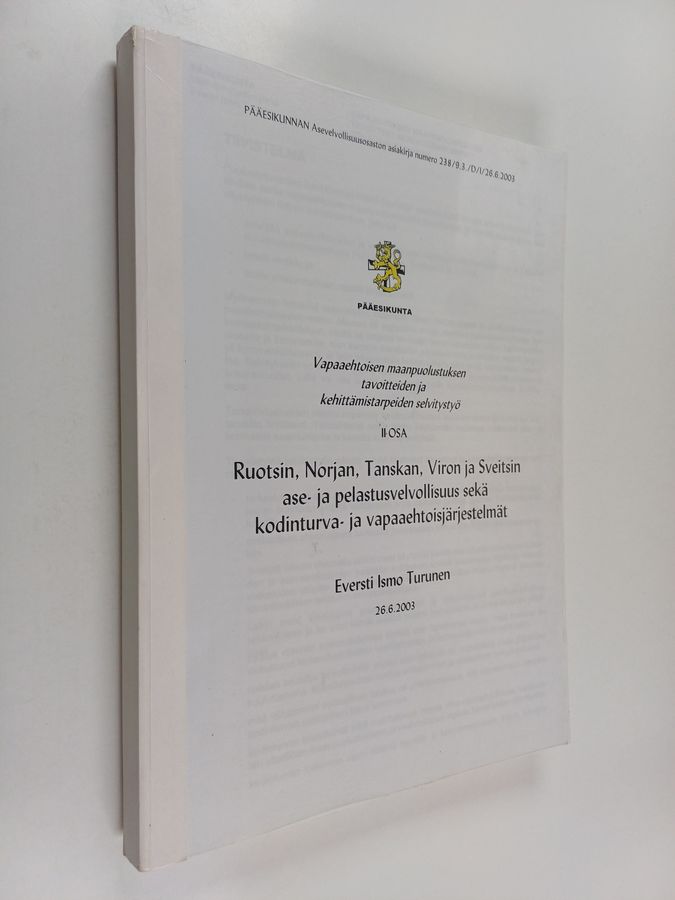 Vapaaehtoisen maanpuolustuksen tavoitteiden ja kehittämistarpeiden selvitystyö, Osa 2 : Ruotsin, Norjan, Tanskan, Viron ja Sveitsin ase- ja ...
