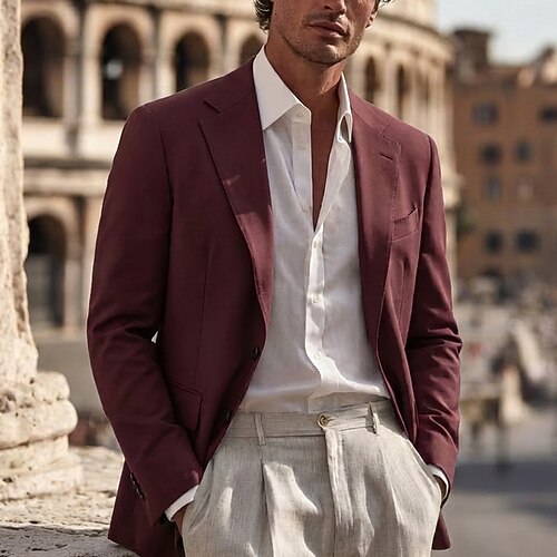 Per uomo Giacca blazer Colletto ad incastro Moda Classico Casual Tinta unita Blazer Nero Borgogna Blu marino Vestibilità su misura Monopetto Due Bottoni