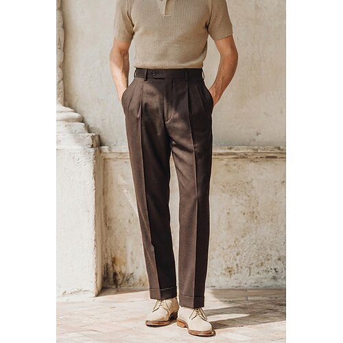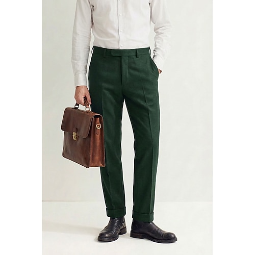 Uomo Cotone Lino Pantaloni Eleganti Pantaloni casual Affari Ufficio Formale Classico Casual Quotidiano Esercito verde Nero Blu marino scuro Tinta unica Vestibilità su misura Lungo Inelastico