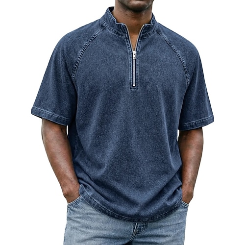 Per uomo Polo Camicia 100% cotone lavaggio acido Casuale Quotidiano Zip a un quarto Manica Corta Moda Essenziale Semplice Zip a un quarto Estate Primavera Vestibilità su misura Nero Rosa Verde scuro