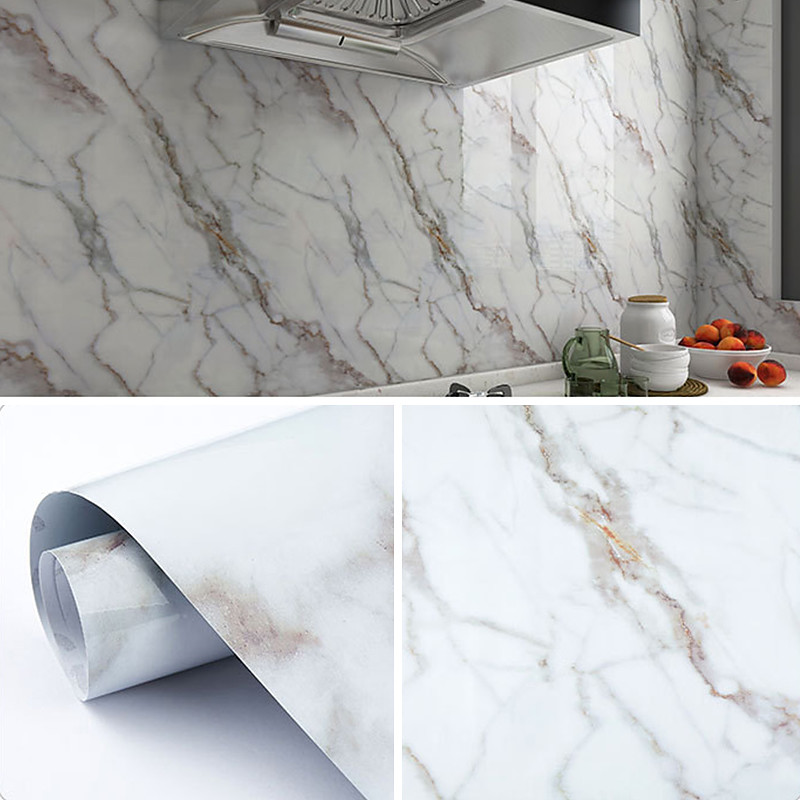 Cool Wallpapers Marble Wallpaper Wall Mural Waterproof Oil Proof MoistureProof Furniture Renovation Self-Adhesive Easily Removable Wall Covering Kitchen Countertop Cabinet Shelf Liner 23.6x118