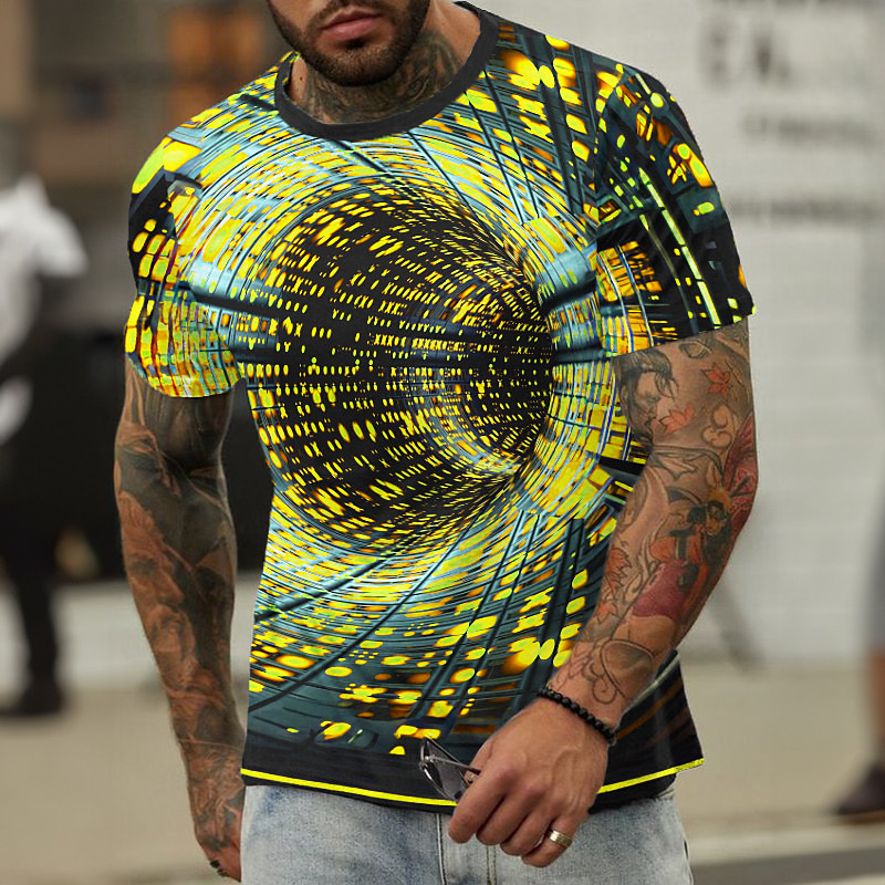 Men's Graphic Geometic Technology T Shirt Short Sleeve T shirt 3D Print Crew Neck Shirt Daily Designer Retro Vintage Sports Outdoor Holiday Going out Yellow Orange Green Spring Summer Clothing