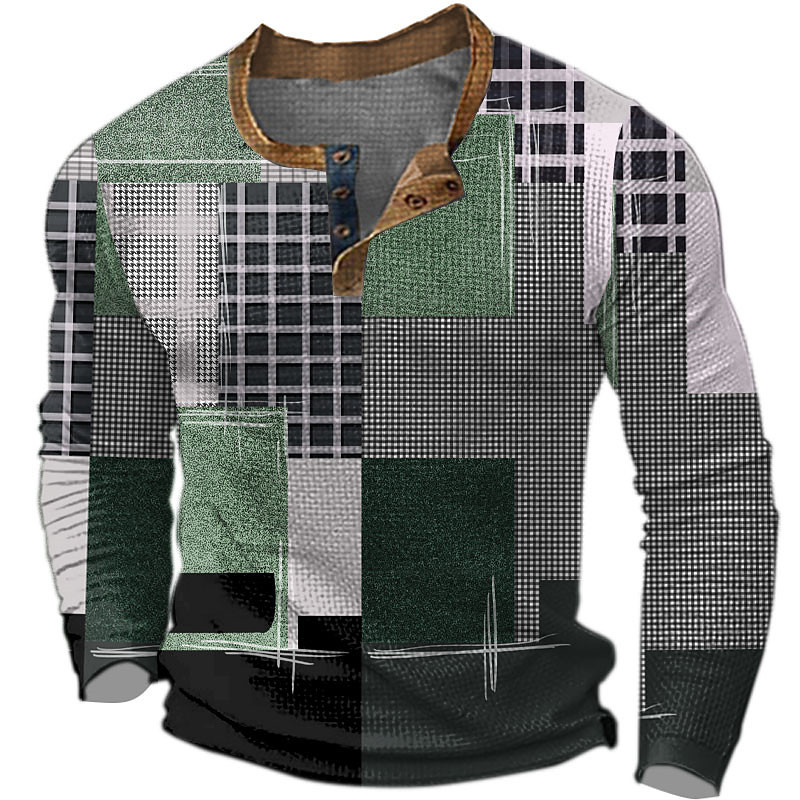 Men's Graphic Plaid Color Block Henley Shirt Waffle T Shirt Long Sleeve 3D Print Fashion Designer Retro Vintage Sports Outdoor Holiday Festival Spring Fall Burgundy Blue Green Gray Henley Henley