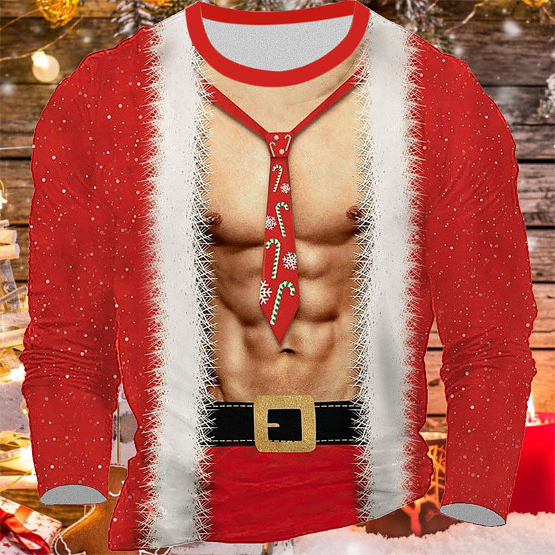 Men's Santa Claus Graphic Prints T Shirt Long Sleeve Shirt Crew Neck Christmas Outdoor 3D Print Black Red Orange Green Print Clothing Apparel Designer Basic Casual Rude Christmas