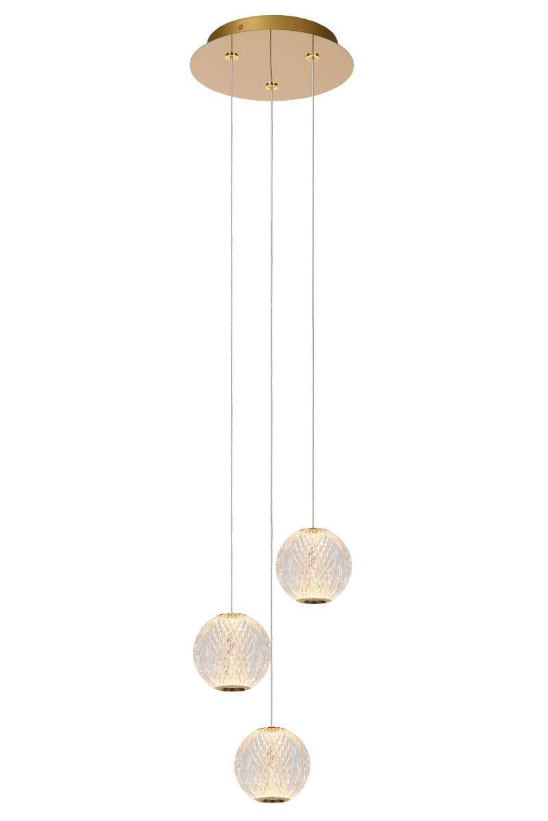 Lucide Cintra - lampe suspendue - 11 x 25 x 150 cm - 3 x 4,7W LED inclus - transparent et doré
