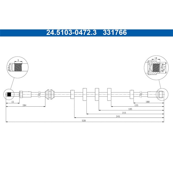 Jarruletku, Etuakseli Ate 24.5103-0472.3 - audi - OE 8K0 611 707 A, 8K0 611 707 B, 8K0 611 707 C