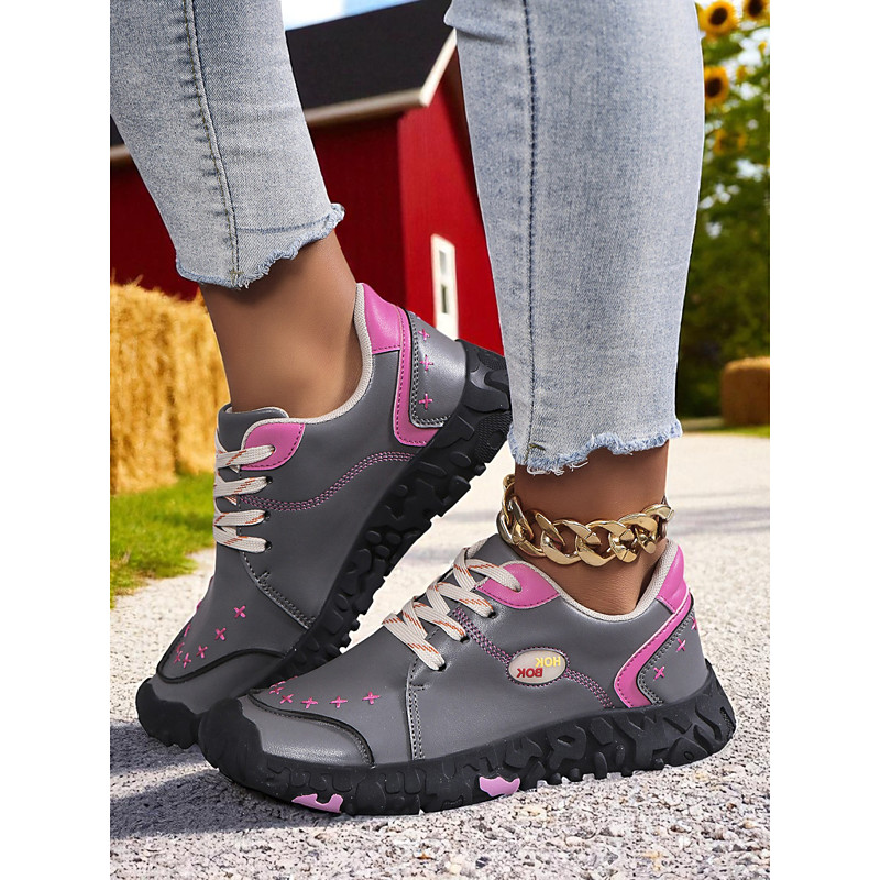 Women's Lace-Up Casual Sneakers - Textured Stitch Detail Comfort Shoes, Ideal for Outdoor Walks, Daily Errands, Brunch Dates Countryside Outings