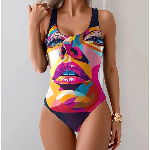 Costume da bagno intero da donna snellente monokini slip controllo della pancia vita alta slim senza schienale abbigliamento da spiaggia per le vacanze vintage ombre grafica scollatura a U costumi da
