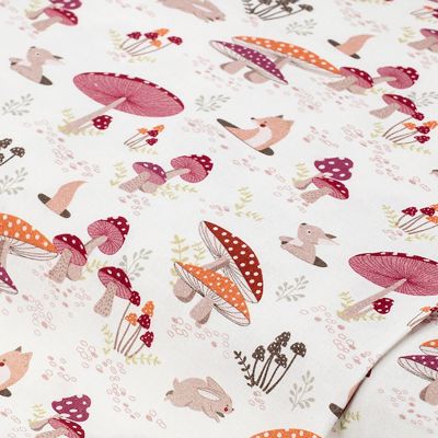 Tissu coton "animaux de la forêt et champignons", blanc/coloré, série "Dana"
