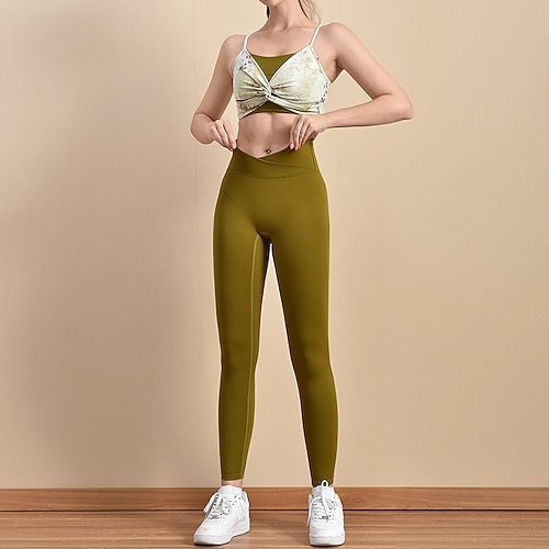 Per donna 2 pezzi di abbigliamento sportivo Leggings e reggiseno sportivo Crossover Stampa Completo Abbigliamento Verde scuro Verde Atletico Corsa Yoga Controllo addominale Sport Abbigliamento