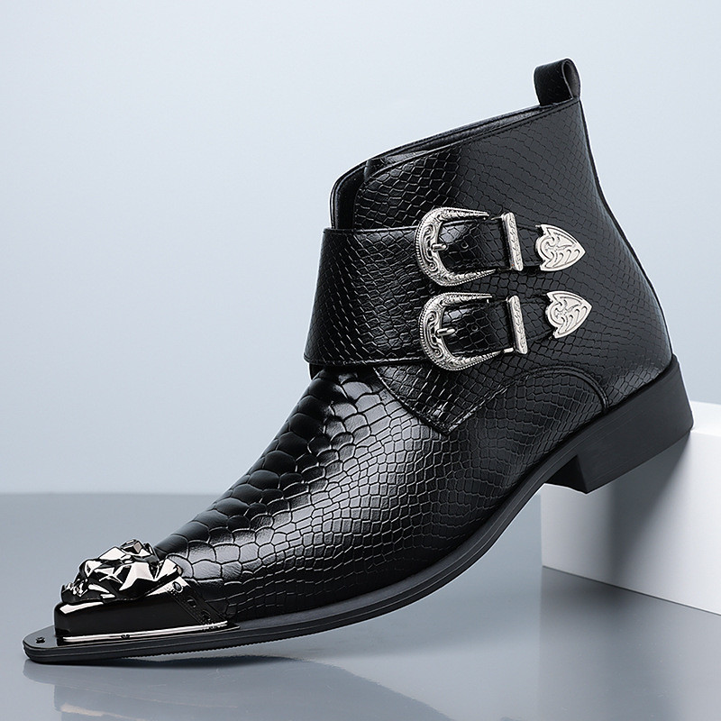 Red Faux Leather Crocodile Print Double Buckle Men's Shoes – Luxury Dress Shoes for Christmas Parties and Elegant Evening Events