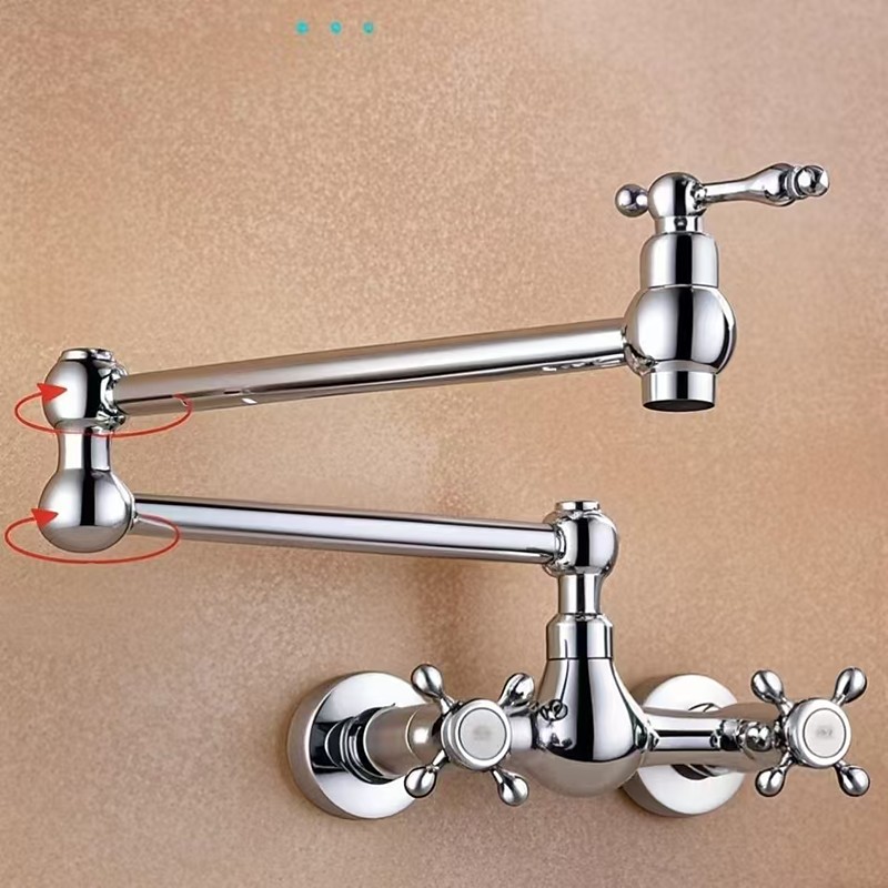 Wall Mounted Kitchen Sink Mixer Faucet, Foldable Pot Filler Facuet,Single Handle Two Holes Folding Taps, Electroplated / Painted Finishes Pull-out / Pull-down / Pot Filler Wall Mounted / Brass