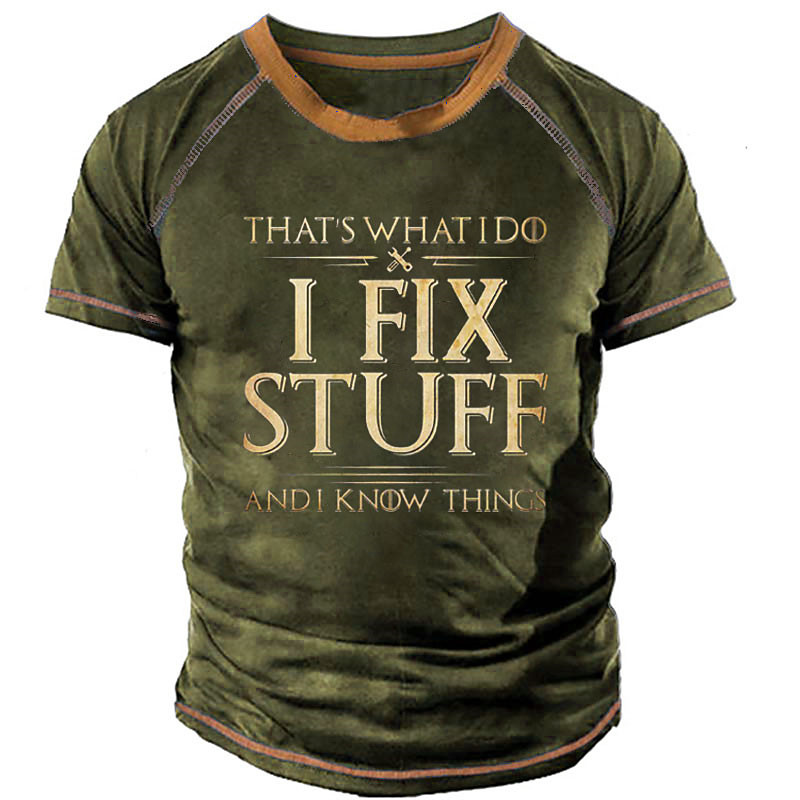 Men's Funny Graphic T-Shirt I Fix Stuff I Know Things Short Sleeve Handyman Work Humor Tee