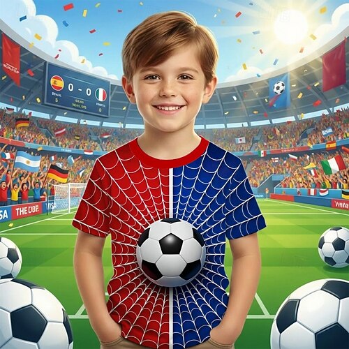 Ragazzi 3D Grafico Calcio Magliette da calcio Maglietta Manica Corta Stampa 3D Estate Primavera Sport Moda Streetwear Bambini 4-12 Anni Girocollo Casuale Quotidiano All'aperto Vestibilità regolare