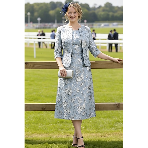 Due Pezzi Linea ad A Lunghezza Tè Abito da invitata a nozze Abito da cerimonia per signora Senza Maniche Manica 3/4 Girocollo Collo quadrato Elegante Semplice Formale Derby del Kentucky Semi-Formale