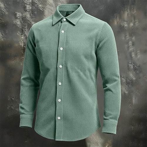 Per uomo Camicia Camicia a nido d'ape Camicia casual Camicia vintage Camicia con Bottoni Nero Bianco Rosso Blu marino Azzurro cielo Manica Lunga Semplice Bavero Casuale Quotidiano Abbigliamento Moda