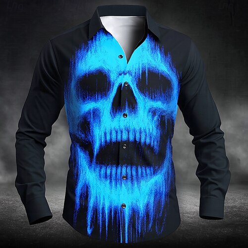Herren Schädel Kostüme Shirt Button Up Shirt Langarm Dunkler Punk Gothic Stil Outdoor Feiertag Sommer Frühling Umschlag 3D Druck Kragen Hemden Weiß Rot Blau Grün Hellblau