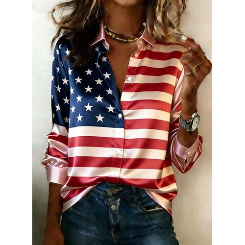 Giorno dell'Indipendenza Americana Per donna Camicia Camicia in raso Camicia button-down Camicia casual Stampato Grafico Bandiera Classico Casual Manica Lunga Colletto a Camicia Top Regolari