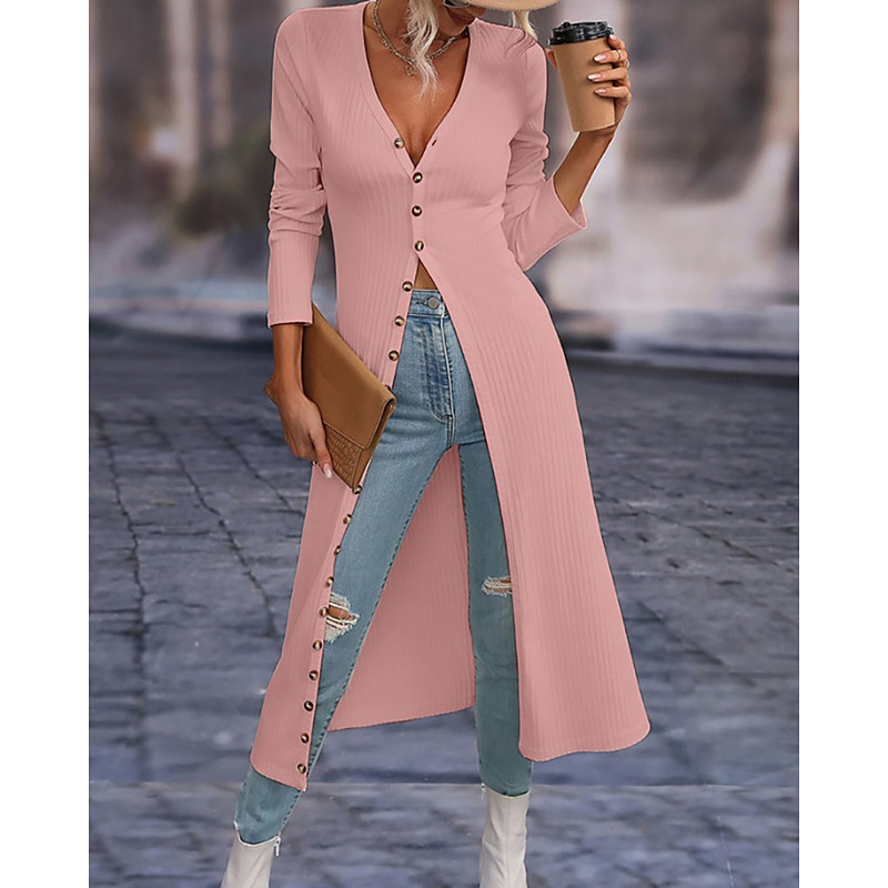 Women's Sweater Cardigan Streetwear Casual Solid Color V Neck Buttons Knitted Long Sleeve Long Tops Knit Daily Holiday Going out White Pink Spring Fall