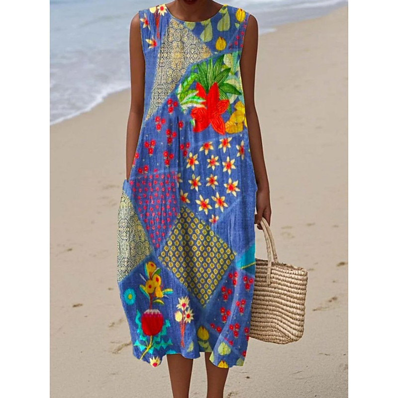 Women's Midi Dress Sundress Shift Dress A Line Dress Vacation Casual Boho Going out Beach Loose Fit Graphic Geometric Sleeveless Crewneck Pink Dark Pink Blue Purple Summer Spring
