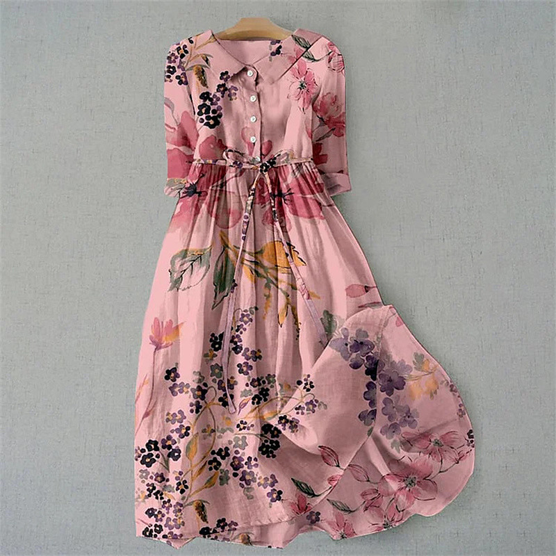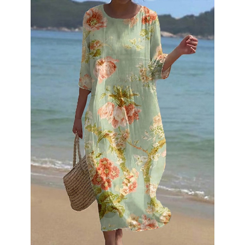 Women's Midi Dress Casual Dress Print Dress Fashion Modern Daily Beach Weekend Regular Fit Floral 3/4 Length Sleeve Crew Neck White Pink Green Spring Fall Autumn