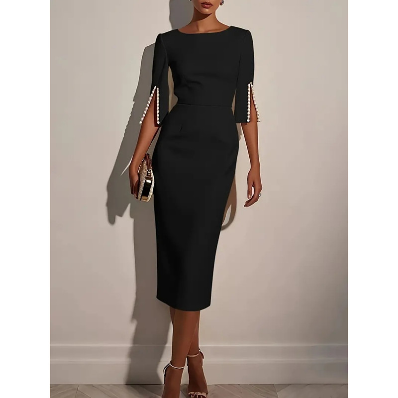 Women's Midi Dress Bodycon Dress Work Dresses Semi Formal Office Regular Fit Plain Half Sleeve Crew Neck Black White Pink Summer Spring Fall