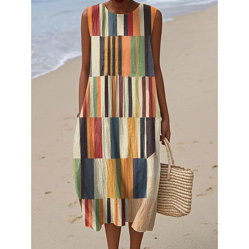Women's Midi Dress Sundress Shift Dress A Line Dress Vacation Casual Boho Going out Beach Loose Fit Graphic Geometric Sleeveless Crewneck Pink Red Light Brown Green Summer Spring