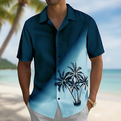 Per uomo Albero di Cocco Colore sfumato Piante Tropicali Camicia hawaiana estiva Camicia con Bottoni Camicia Aloha Manica Corta Hawaiano Vacanza Estate Primavera Collo ripiegato Stampa 3D camicie con