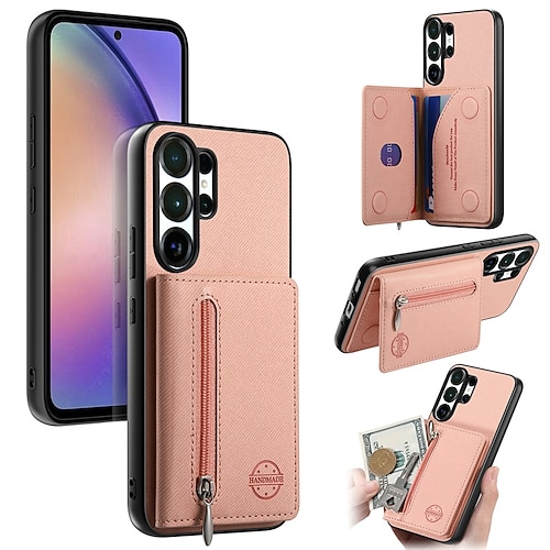 Handy Hülle Handyhüllen Für Samsung Galaxy S26 S26 Plus S26 Ultra Rückseite Brieftaschenhülle Mit Ständer Reisverschluss Ständer Retro TPU PU-Leder