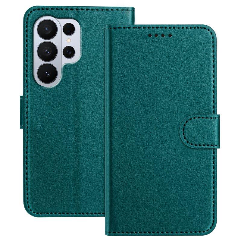 Samsung Galaxy S26 Ultra Fodral Äkta Läder Ställ Solid Färg - Grön
