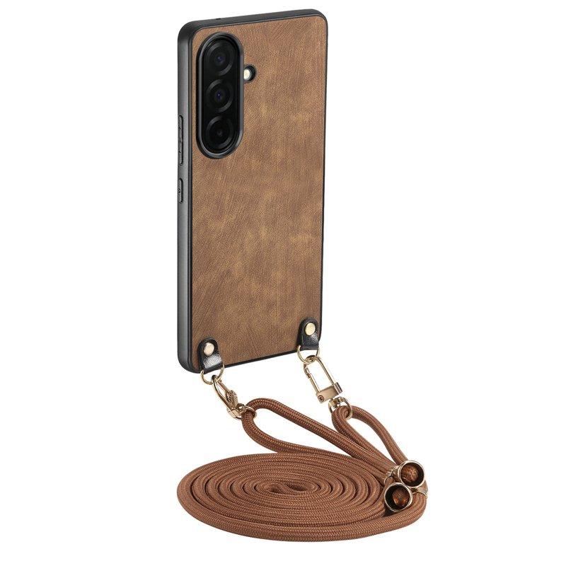 Mobilskal för Samsung Galaxy S26 Plus Konstläder Justerbar rem - Brun