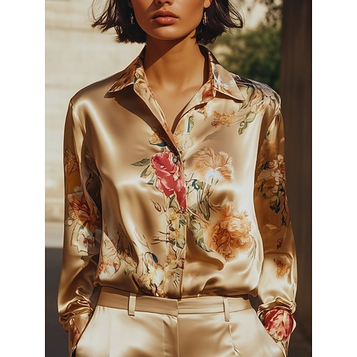 Per donna Camicia da lavoro Floreale Grafico Elegante Essenziale Casual Manica Lunga Colletto a Camicia Top Regolari Lavoro Abbigliamento da sera Quotidiano Giallo Verde chiaro Blu Verde Primavera
